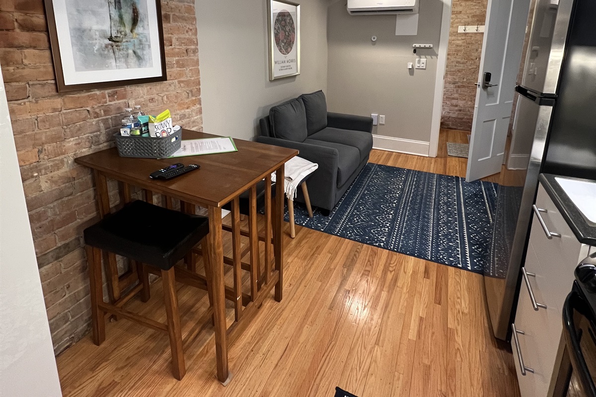 Dedicated fiber internet per apartment. This apartment has a wired ethernet connection available next to the couch. Apt. 11 is on the second floor. All guests are important to us and we want to assure the comfort and safety of every guest. The shared spaces are thoroughly cleaned regularly and we have a medical grade air cleaner stationed in the main hallway of the first floor to assure all guests experience a clean air-allergy free environment. Apartment 5, 3 and 1 have exterior entrances. Please contact us regarding your needs.